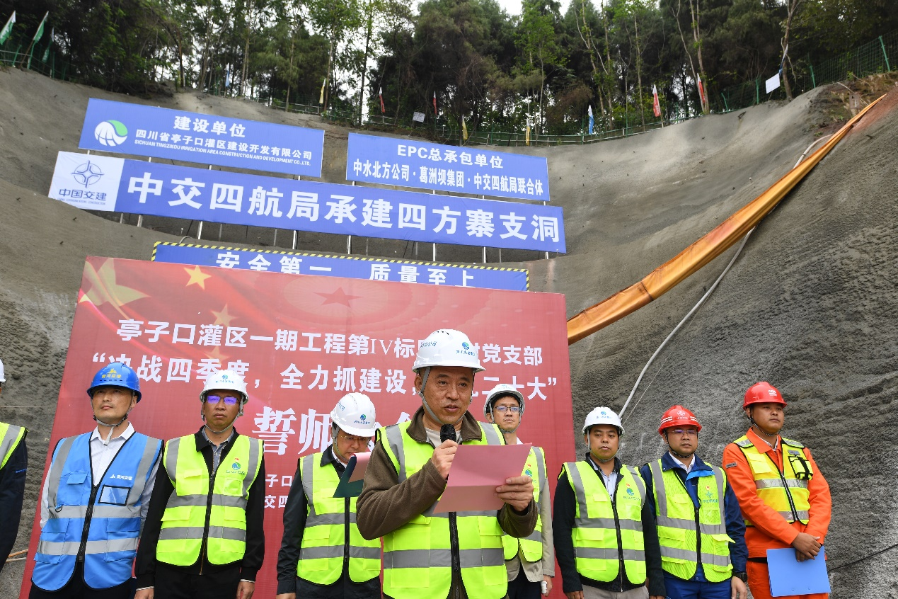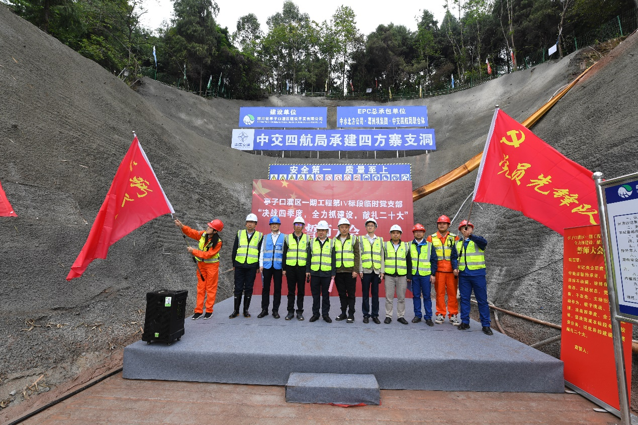 亭子口公司黨委委員、副總經(jīng)理劉飛、但凱、路長(zhǎng)青及黨群工作部、現(xiàn)場(chǎng)管理四部有關(guān)人員,第IV標(biāo)段“EPC”總包單位、施工單位、監(jiān)理單位黨員代表共40余人參加誓師大會(huì)。